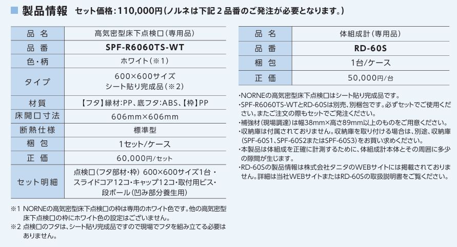 体組成計付き 高気密型床下点検口 NORNE SPF-R6060TS-WT【標準型】+体組成計(体重計)RD-60S