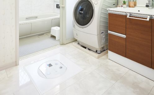 タニタ社とコラボレーションした体組成計が一体となった床下点検口。