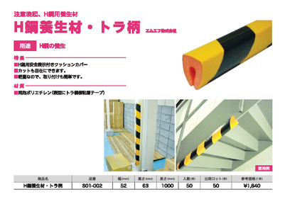 H鋼養生材・トラ柄 横幅52mm×縦幅63mm×長さ1000mm《10本/ケース・50本/ロット》 KMネクスト