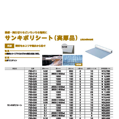 サンキポリシ-ト 厚0.1mm×幅1000/1350/1800/2000(1000W)/3600(1800W)mm×長さ50/100m
