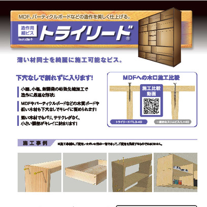 ●MDFやパーティクルボードなどの木質ボードや細い木材も下穴なしでキレイに留められます!