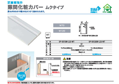 隙間化粧カバー ムクタイプ(W70)【厚み7mm・幅70mm・長さ2305mm】SP-SK70M-L23-WT《3本/ケース》