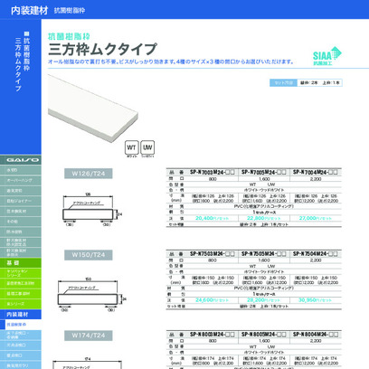 樹脂製ドア枠 三方枠 ムクタイプ(W150/T24)【幅150mm・開口2200mm・高さ2200mm】SP-N7504M24-WT/UW(セット内容:竪枠2本・上枠1本)