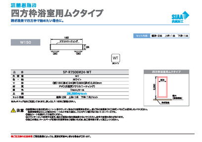 樹脂製 四方枠浴室用ムクタイプ〔跨ぎ段差タイプ〕【幅150mm・開口800mm・高さ2200mm】 SP-R7506M24-WT