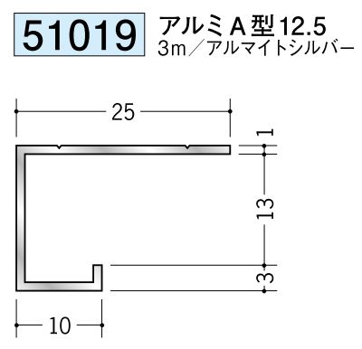 アルミ製目透かし型見切縁 アルミAM-9 アルマイトシルバー 長さ3m 創建