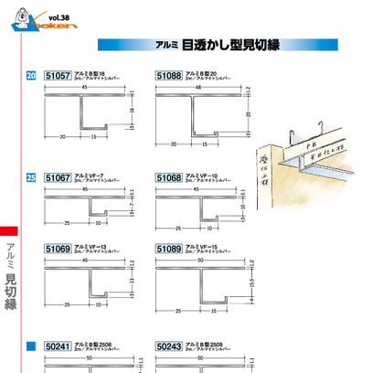 アルミ製目透かし型見切縁 アルミB型16 アルマイトシルバー 長さ3m 創建