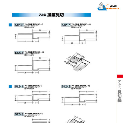 アルミ換気見切KMO-10 アルマイトシルバー 長さ3m