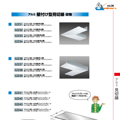 アルミ製壁付け型見切縁 アルミC型-75用直角入隅 アルマイトシルバー
