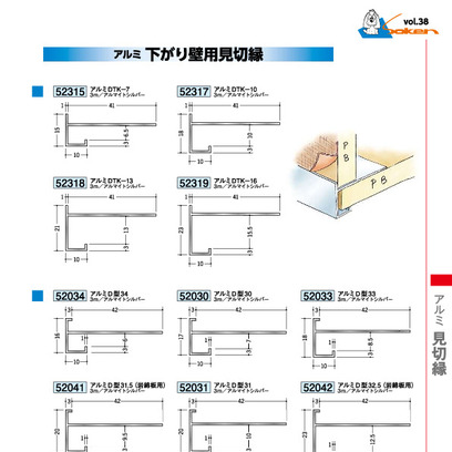 アルミ下がり壁用見切縁