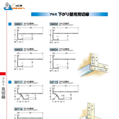 アルミ製下がり壁用見切縁 アルミD型67 アルマイトシルバー 長さ3m