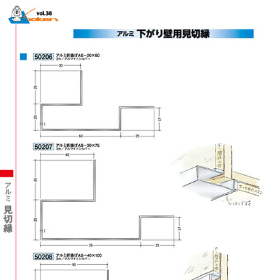 アルミ製下がり壁用見切縁 アルミ折曲げ AS-40×100 アルマイトシルバ- 長さ3m 創建