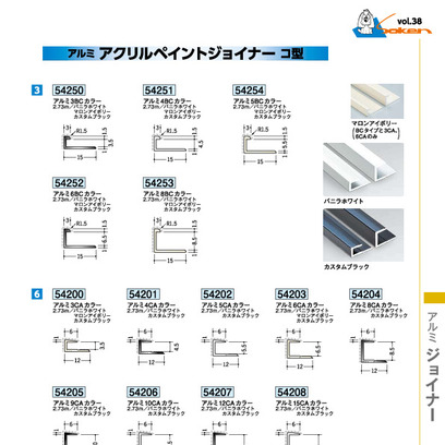 アルミ製コ型ジョイナー(アクリルペイント) アルミ3CA カラー:3色 長さ2.73m