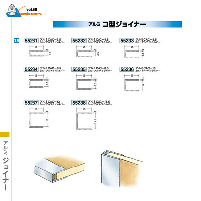 アルミ製コ型ジョイナー アルミCAC-13 アルマイトシルバー 長さ3m 創建