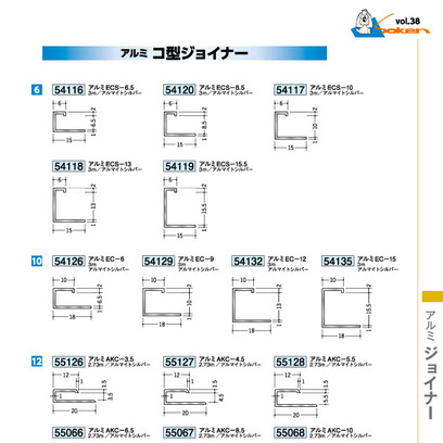 アルミ製コ型ジョイナー アルミAKC-13 アルマイトシルバー 長さ2.73m 創建