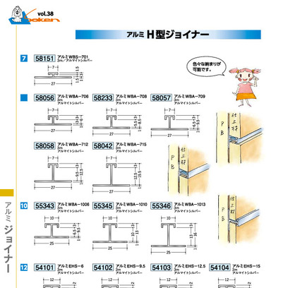アルミ製H型ジョイナー アルミWBA-1010 アルマイトシルバー 長さ3m