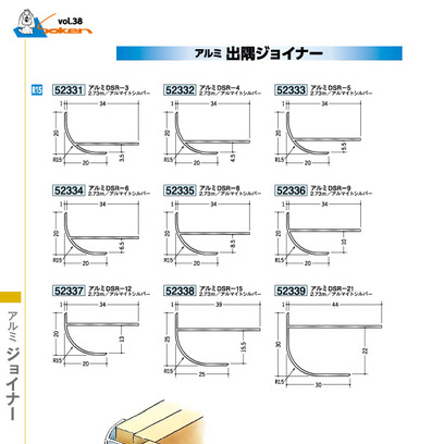 アルミ製出隅ジョイナー アルミDSR-21 アルマイトシルバー 長さ2.73m