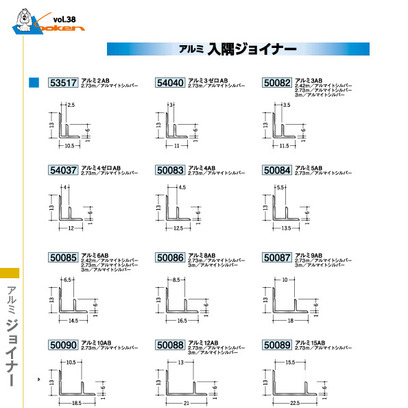 アルミ製入隅ジョイナー アルミ12AB アルマイトシルバー 長さ2.73m/3m 創建