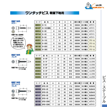 ワンタッチビス 軽量下地用 梨地カラー【ホワイト】 線径3.0mm×長さ20mm 創建