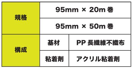 基材:PP長繊維不織布・粘着剤:アクリル粘着剤