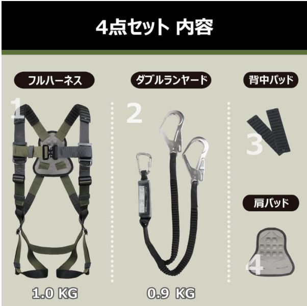 フルハーネス4点セットフリーサイズ《フルハーネス・ダブルランヤード・肩/背中パット》