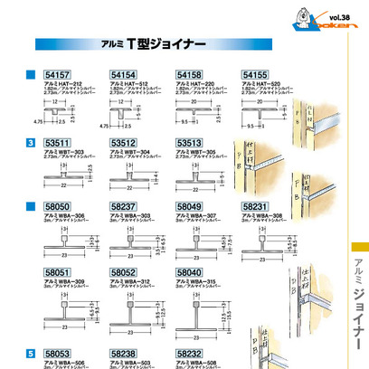 アルミ製T型ジョイナー アルミWBT-305アルマイトシルバー 長さ2.73m 創建