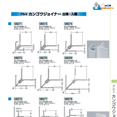 アルミ製カンゴウジョイナー(出隅) カンゴウAKD-12 アルマイトシルバー 長さ2.73m