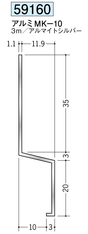 アルミ 腰壁見切 アルミZA-7 アルマイトシルバー 長さ3m 創建
