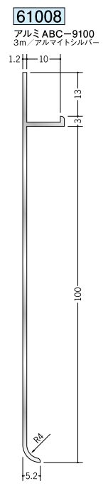アルミ製巾木 アルミABF-930 アルマイトシルバー 長さ3m
