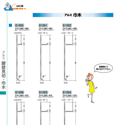 アルミ製巾木 アルミABC-1275 アルマイトシルバー 長さ3m