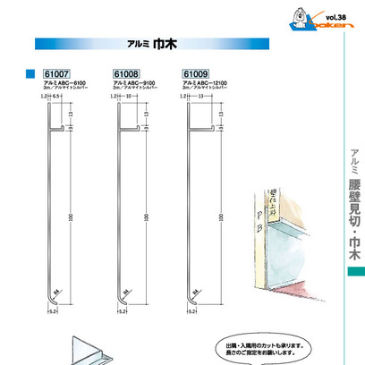 アルミ製巾木 アルミABC-9100 アルマイトシルバー 長さ3m