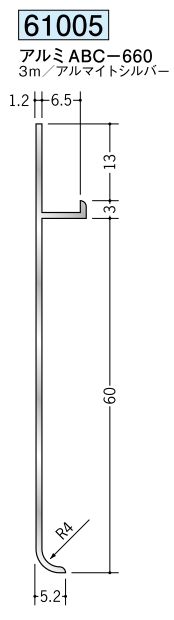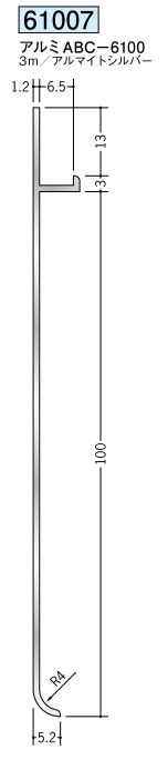 アルミ製巾木 アルミABC-12100 アルマイトシルバー 長さ3m