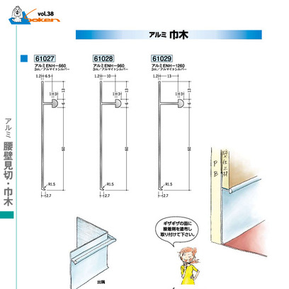 アルミ製巾木 アルミENH-1260 アルマイトシルバー 長さ3m