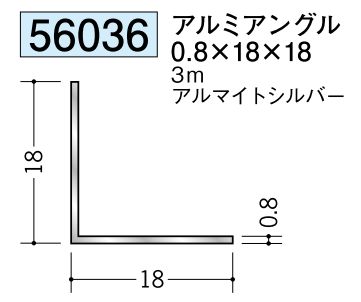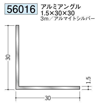 アルミ製アングル(等辺) アルミアングル 2.5×15×15 アルマイトシルバー 長さ3m
