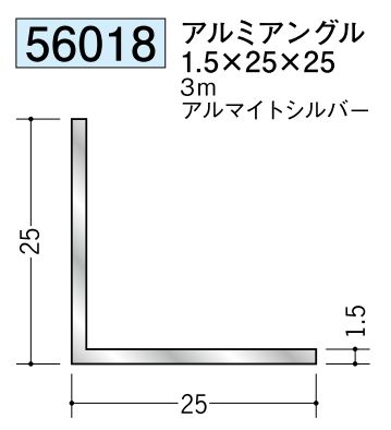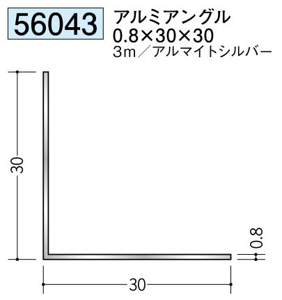 アルミ製アングル(等辺) アルミアングル 2.5×20×20 アルマイトシルバー 長さ3m