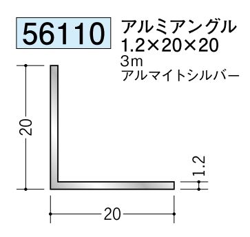アルミ製アングル(等辺) アルミアングル 3×20×20 アルマイトシルバー 長さ3m