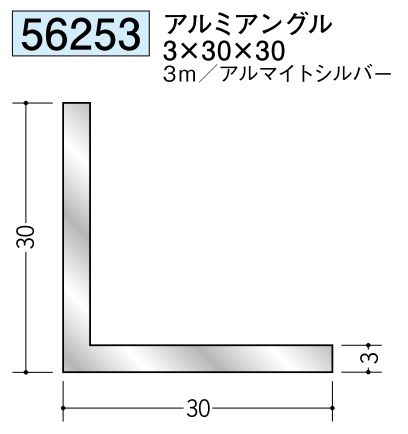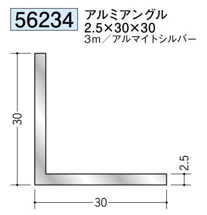アルミ製アングル(等辺) アルミアングル 2.5×30×30 アルマイトシルバー 長さ3m
