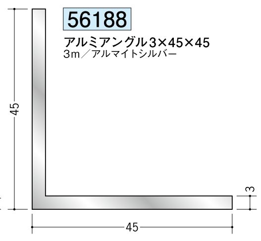 56253 アルミ製アングル(等辺) アルミアングル3mm×30mm×30mm アルマイトシルバ- 長さ3m 創建 アルミアングル3×30×30 長さ3m