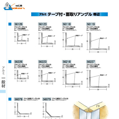 アルミ製テープ付アングル(等辺) アルミアングル20テープ付出隅用 アルマイトシルバー 長さ3m 創建