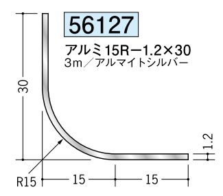 アルミ製R付アングル(等辺) アルミ10R1.2×25 アルマイトシルバー 長さ3m 創建