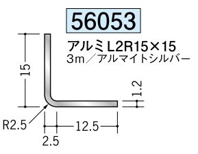 アルミ製R付アングル(等辺) アルミ15R1.2×30 アルマイトシルバー 長さ3m 創建