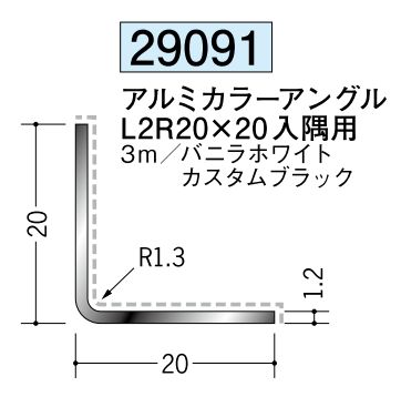 アルミ製アングル(等辺) アルミカラーアングル1.5×40×40BW ホワイトアルマイト1/電解ブラック 長さ3m