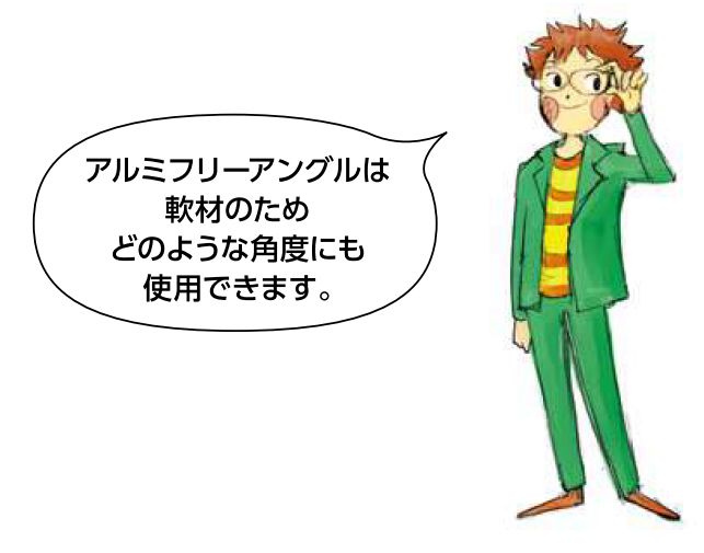 アルミフリーアングルは軟材のためどのような角度でも使用できます。
