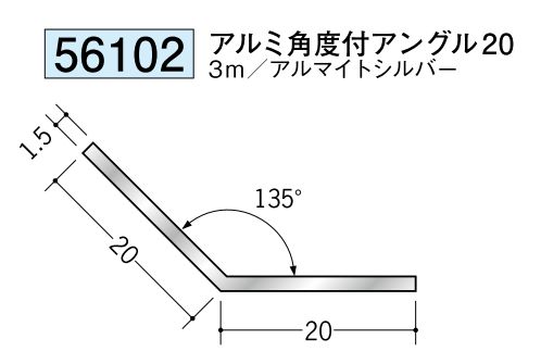 アルミ製アングル(不等辺) アルミアングル1.2×9×25 アルマイトシルバー 長さ2m 創建