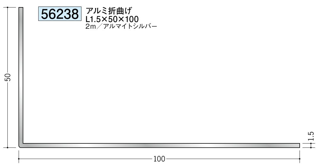 アルミ製アングル(不等辺) アルミアングル2.5×13×35 アルマイトシルバー 長さ2m 創建