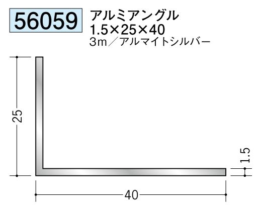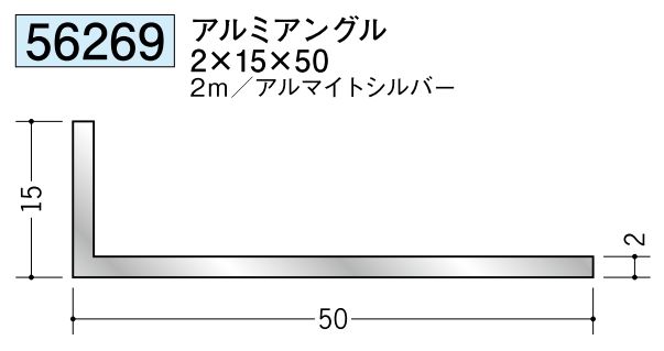 アルミ製アングル(不等辺) アルミアングル1.5×15×25 アルマイトシルバー 長さ2m