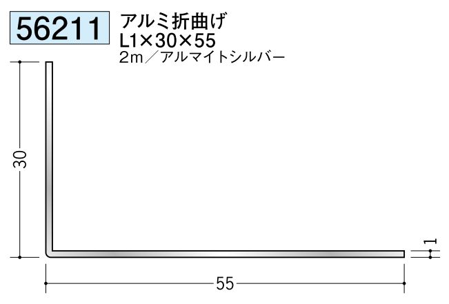 アルミ製アングル(不等辺) アルミアングル2×15×25 アルマイトシルバー 長さ2m 創建
