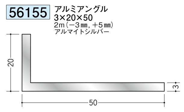 56131 アルミ製アングル(不等辺) アルミアングル3×20×40 アルマイトシルバ- 長さ2m 創建 (不等辺)アルミアングル3×20×40 長さ2m