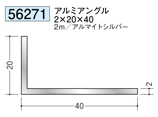 56057 アルミ製アングル(不等辺) アルミアングル1.5×20×50 アルマイトシルバ- 長さ3m 創建 (不等辺)アルミアングル1.5×20×50 長さ3m