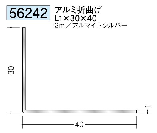 アルミ製アングル(不等辺) アルミ折曲げL1×30×75 アルマイトシルバー 長さ2m