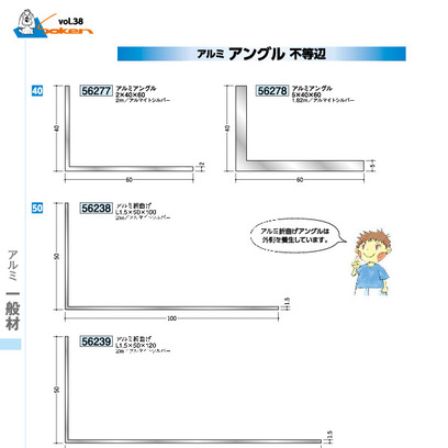 アルミ製アングル(不等辺) アルミ折曲げL1.5×50×150 アルマイトシルバー 長さ2m 創建